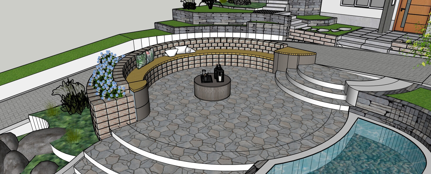 Im 3D+-Paket ist die Visualisierung fotorealistisch und Sie bekommen zusätzlich ein kurzes Walkthrough-Video durch Ihre neue Außenanlage (bis zu 1 Minute lang).